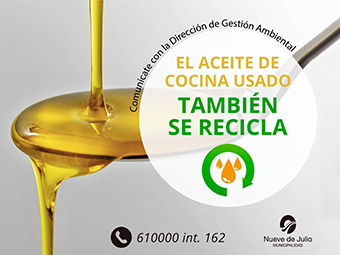 La Municipalidad de Nueve de Julio, a través de la Dirección de Gestión Ambiental recuerda que es obligatorio para los comercios gastronómicos la aplicación del Programa de Recuperación de Aceite Vegetal Usado, mientras que se invita a los generadores particulares a que se sumen a este programa.
