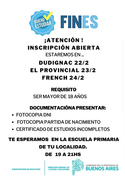 Si tenés 18 años o más y no iniciaste o no terminaste los estudios obligatorios (Nivel primario y/o secundario), el Plan FinEs te permite hacerlo. Podés cursar de manera semipresencial el trayecto que te falte o rendir las materias que tengas pendientes, acompañado de docentes tutores.