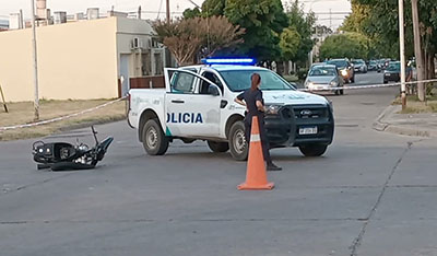 Poco antes de las 19 del sábado, se registró un accidente en la esquina de Agustín Alvarez y La Rioja, que arrojó como consecuencia que un menor de edad debiera ser internado con heridas graves, tras la colisión de un vehículo y una moto.