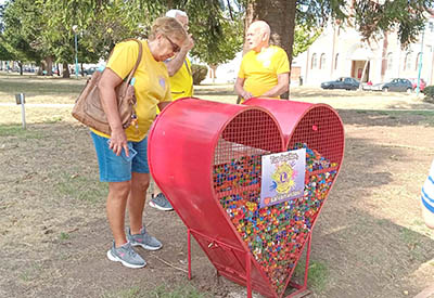 Mediante un sencillo acto, el Club de Leones de 9 de Julio inauguró ayer por la mañana los dos “Corazones Solidarios” instalados en Plaza General Belgrano (ubicados sobre las aceras de Av. San Martín casi Libertad, y Av. Mitre casi Vedia). Allí se recolectan tapitas de envases de gaseosas que posteriormente son destinadas a la Fundación Garrahan para su venta y reciclado.