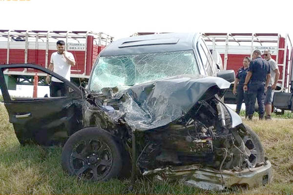 Producto del fuerte impacto, la mujer de Díaz, identificada como Bárbara Oliver (32 años), salió despedida del habitáculo de la camioneta RAM. “Se presume que no tenía puesto el cinturón de seguridad”, explicaron las fuentes del caso.