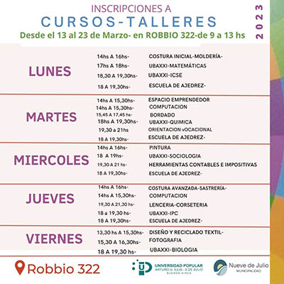 El día lunes 13 del corriente, abrieron las inscripciones para los cursos y talleres que se ofrecen en la Universidad Popular.