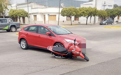 A raíz de un llamado al 911 la Estación de Policía Comunal de 9 de Julio supo que colisionaron un motovehículo Honda Wave 110cc, sin dominio colocado, conducido por un hombre de 66 años contra un automóvil Ford Focus conducido por una mujer de 77 años, ambos oriundos de esta localidad.