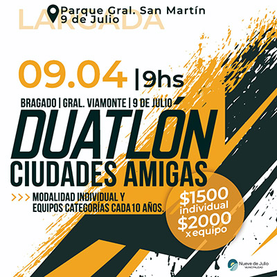 La dirección municipal de Deportes invita a participar del duatlón denominado “Ciudades amigas”.