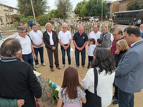 Como cierra del acto se despositó una ofrenda floral en el monolito de homenaje al soldado Francisquez, desaparecido durante el hundimiento del ARA General Belgrano.
