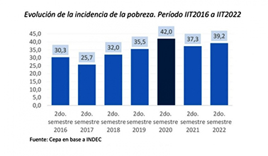 La Plata, (Por InfoGEI).- Según las conclusiones a las que llega un estudio del Centro de Economía Política Argentina (CEPA), la evolución de la incidencia de la pobreza en el segundo semestre de 2022 alcanzó al 39,2% de las personas y la incidencia de la indigencia al 8,1%.