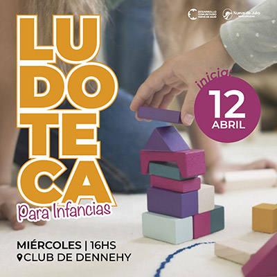 Desde el miércoles 12 de abril, la secretaría municipal de Desarrollo Comunitario iniciará las actividades de una original “Ludoteca” para infancias, la que se desarrollará todos los miércoles, a las 16 en el club de Dennehy.