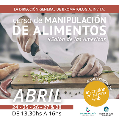 La dirección municipaol de Bromatología informa que se encuentra abierta la inscripción para el nuevo curso gratuito de manipuladores de alimentos que se dictará entre los días 24 y 28 de noviembre, de 13,30 a 16,00, en el Salón de las Américas del Palacio Municipal.