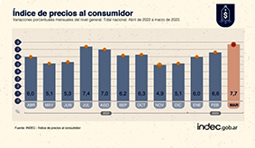 Las siguientes divisiones con mayores variaciones en el período fueron Prendas de vestir y calzado, con el 9,4%, en coincidencia con el cambio de temporada; y Alimentos y bebidas no alcohólicas, con 9,3%, por los incrementos en Carnes y derivados y Leche, productos lácteos y huevos.