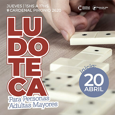 Desde hoy ueves 20, la secretaría de Desarrollo Comunitario de la Municipalidad de Nueve de Julio, iniciará las actividades de una original “Ludoteca” para adultos mayores, la que se desarrollará en el local de Cardenal Pironio 2620, todos los jueves, de 15 a 17 hs.