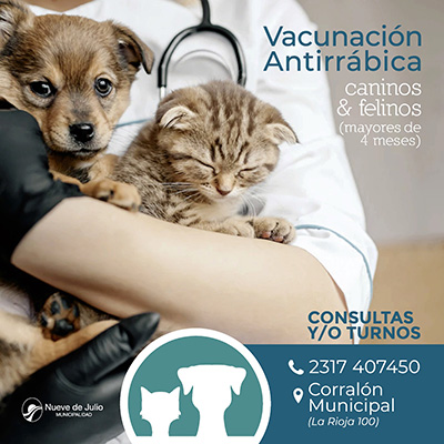El viernes 28 de abril desde las 8, la Dirección de Albergue Canino de la Municipalidad de Nueve de Julio, llevará adelante una campaña gratuita de vacunación antirrábica, dirigida a canes y felinos mayores de 4 meses, la que se enmarca en la conmemoración del Día del Animal, que se celebra el sábado 29.