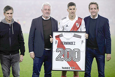 Es el quinto jugador del plantel en llegar a los 200 partidos, aparte de Jonathan Maidana, Milton Casco, Franco Armani y Enzo Pérez.