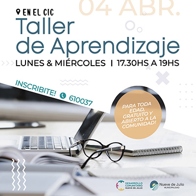 Desde la secretaría de Desarrollo Comunitario, se dicta en el Centro Integrador Comunitario (CIC), todos los lunes y miércoles, de 17,30 a 19 hs., un Taller de Aprendizaje para todas las edades y abierto a toda la comunidad.