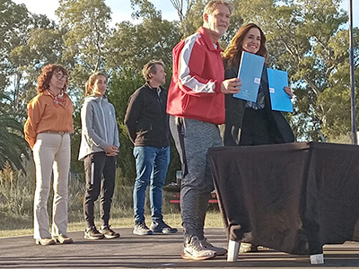 Tras ello y junto a la secretaria de Deportes de la Nación,Inés Arrondo, y a la concejal Nancy Grizzutti, entregaron material deportivo a más de cien clubes de la región.