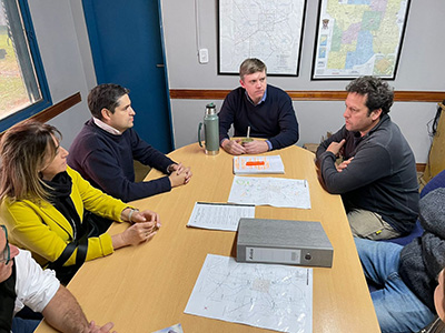 Acompañado por parte de su equipo fueron recibidos por el Intendente Román Bouvier, el secretario de Gobierno Nicolás Scardino, quienes dieron un pantallazo general del funcionamiento del municipio y los programas más importantes que se vienen desarrollando en el distrito.