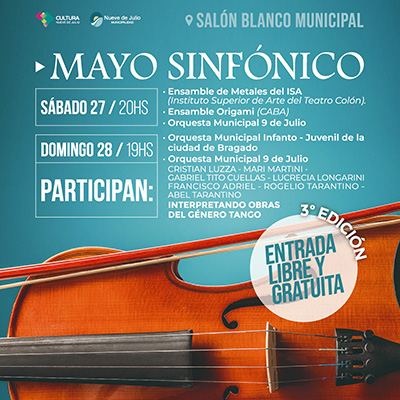 La dirección municipal de Cultura desarrollará una nueva edición del ciclo “Mayo Sinfónico”, programa que se inició en 2019, y retomó luego su actividad en 2022 tras la pandemia. A través de este programa intenta visibilizar el trabajo de la Orquesta 9 de Julio, entregando un gran espectáculo cultural a la comunidad, con entrada libre y gratuita.
