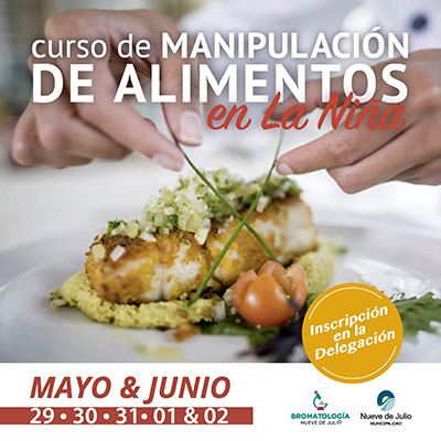 La dirección municipal de Bromatología informa que se encuentra abierta la inscripción para el nuevo curso gratuito de manipuladores de alimentos que se dictará entre los días 29 y 31 de mayo; y 1 y 2 de junio; en la localidad de La Niña