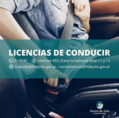 La oficina de Licencias de Conducir informa el listado de licencias a retirar, en el horario de 7 a 13  en el local 12 de la Galería Italiana, con fecha límite para retiro el 7 de Julio de 2023. Es de destacar que en caso de no ser retiradas durante ese período, serán remitidas a la Dirección provincial de Políticas y Seguridad Vial para su anulación.