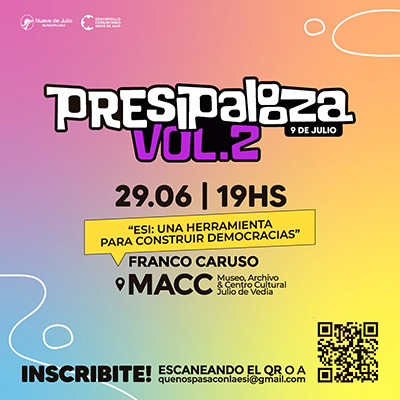 En esta ocasión, disertará Franco Caruso, docente de local, quien tomará la ESI como herramienta para construir democracias de la que podrán participar docentes, docentes en formación, estudiantes, familias y comunidad en general.