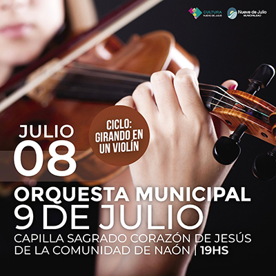 La Dirección de Cultura de la Municipalidad de Nueve de Julio pondrá en marcha el ciclo denominado “Girando en un Violín”. Será el sábado 8 de julio a las 19 en la Capilla del Sagrado Corazón de Jesús de Carlos María Naón. Alli se presentará la Orquesta Municipal .