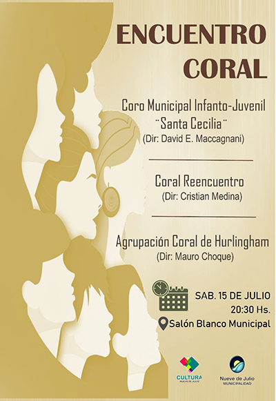 Actuarán el coro Municipal Infanto-Juvenil “Santa Cecilia”, dirigido por el Prof. David Maccagnani; Coral Reencuentro, dirigido por el Prof. Cristian Medina y la Agrupación Coral de Hurlingham, dirigida por el Prof. Mauro Choque.