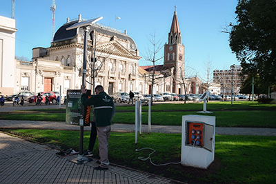 La dirección municipal de Gestión Ambiental, instaló ayer la primera estación solar en la plaza Belgrano la que permitirá cargar dispositivos móviles e inflar bicicletas.