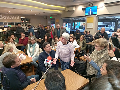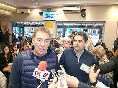 En suelo nuevejuliense, se sumó el compañero de fórmula del diputado del PRO, el intendente de San Isidro, Gustavo Posse, para participar de un “café con vecinos”, en un bar céntrico.