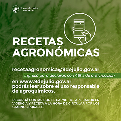 La Dirección de Espacios Verdes de la Municipalidad de Nueve de Julio, invita a profesionales y productores a declarar las recetas agronómicas de aplicación, situación de carácter obligatorio, a través del correo electrónico