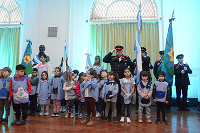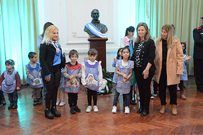 Con motivo de conmemorarse ayer el 173 aniversario del fallecimiento del Gral. José de San Martín, la Municipalidad de Nueve de Julio -junto a los jardines de infantes 909 y 919-, desarrolló los actos en el Salón Blanco municipal.