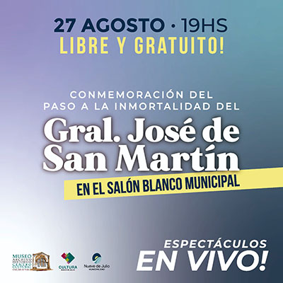 El encuentro artístico conmemorando un nuevo aniversario del paso a la inmortalidad delGral. José de San M artín, fue reprogramado para el domingo 27, en el Salón Blanco municipal.