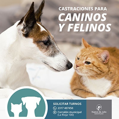 A través de la dirección general del Albergue Canino y Zoonosis, se continúa desarrollando la campaña de castraciones de caninos y felinos, en el predio del ex Corralón Municipal, de lunes a viernes, de 8 a 13 hs.; recomendándose que quienes deseen efectuar consultas o solicitar turnos, deben comunicarse con el celular 2317-407450; a excepción de los gatos machos, que se atienden sin turno.