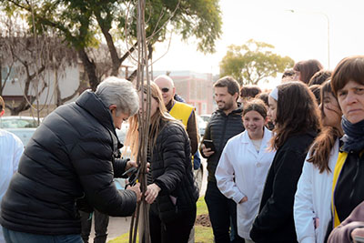 Al haberse conmemorado el martes 29 el Día del Arbol, la Municipalidad de Nueve de Julio, a través de la dirección de Espacios Verdes, plantò ayer por la mañana 22 fresnos americanos sobre las aceras de la Escuela Normal Superior, en la avenida Cardenal Pironio entre las calles Mendoza y Alsina.