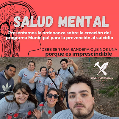 Finalmente desde la Juventud Radical, afirman que “se debe gestionar más y mejor por la salud mental en el distrito, utilizando de manera eficiente los recursos que el Estado tiene, como es el presupuesto Municipal que actualmente destina 25 mil pesos anuales y se lleva gastado cero peso en esta materia. Es imprescindible que esta sea una bandera colectiva para abrazar la salud mental de todos”.