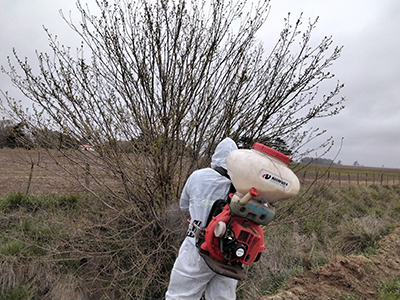 De esta manera, al corte y pintado del tocón se le agrega la pulverización foliar, trabajándose sobre Acacia Negra y árboles o arbustos qué ocasionen algún problema en cruce de caminos o estrechen los mismo