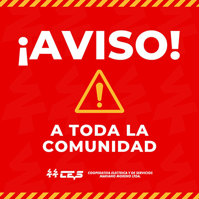 La Cooperativa Eléctrica y de Servicios Mariano Moreno Ltda advirtió a toda la comunidad que personas inescrupulosas están llamando a asociados de la CEyS haciéndose pasar por empleados del sector Gas Natural, diciendo que van a pasar por sus domicilios debido a una “fuga de gas”.