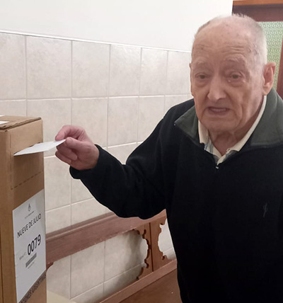 El vecino Osvaldo Antonio Repetto, a punto de cumplir 93 años, cumplió con su deseo de “seguir votando, como lo he hecho siempre en cada período democrático, entendiendo que esta era una elección muy importante”.