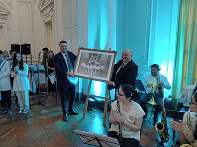 Entre los actos conmemorativos del 160 aniversario de la fundación de nuestra ciudad, el viernes27, en el Salón Blanco Municipal, tras la interpretación del Himno Nacional, a cargo de la banda municipal “Jesús A. Blanco”, que celebró sus 30 años de trayectoria; el Intendente Mariano Barroso le entregó un reconocimiento a través de su director, Gustavo Tévez.