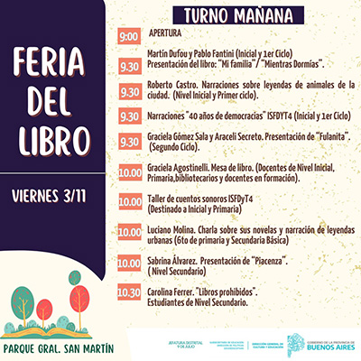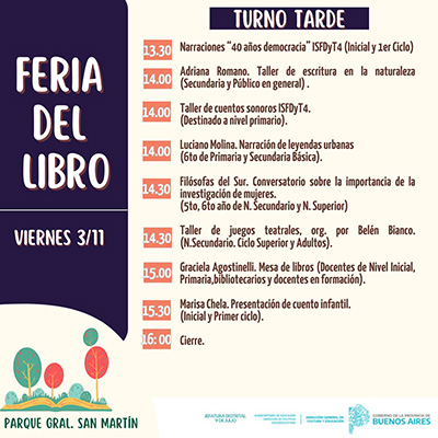 Este viernes 3 de noviembre, en el Parque General San Martín, se llevará a cabo la Feria del Libro 2023, en el marco de los 40 años de Democracia, con la organización de la Jefatura Distrital de Educación.