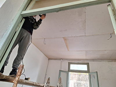 En una primera etapa repararon los techos y colocaron nuevas chapas y perfiles que abarcan el sector de ingreso, la guardia, las oficinas internas y las habitaciones de la planta superior; mientras que en estos momentos se reemplazan y renuevan cielorrasos en diferentes dependencias, donde además se realizan trabajos de pintura.