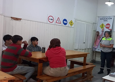 En esta oportunidad le tocó a la Escuela Secundaria Nº15 de la localidad de El Provincial, donde los alumnos recibieron una charla sobre uso reglamentario del casco, cinturón de seguridad y responsabilidades de los peatones y ciclistas; reglamentaciones todas ellas previstas en la Ley Nacional de Tránsito 24.449; con la coordinación de la Inspectora Alejandra Nappi.