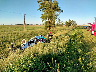 Los Bomberos Voluntarios de 9 de Julio fueron alertados ayer a la mañana sobre un accidente vial, registrado en Ruta Nacional 5, Km 283, donde se había producido un accidente vial con vuelco de un utilitario.