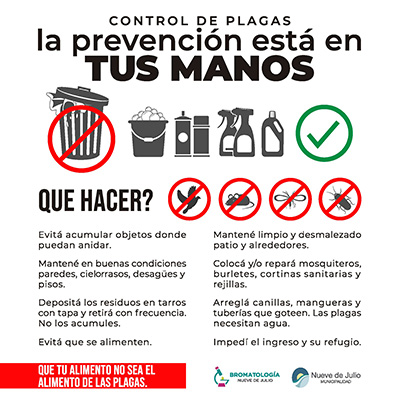 La Dirección de Bromatología de la Municipalidad de Nueve de Julio recuerda las siguientes recomendaciones para el control de plagas: