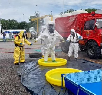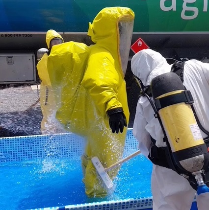 Los Bomberos Voluntarios llevaron a cabo este sábado una larga instrucción sobre manejo de materiales peligrosos.