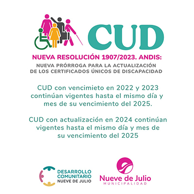 La dirección de Discapacidad, dependiente de la Secretaría de Desarrollo Comunitario, informa sobre una nueva prórroga para la actualización de los de Certificados Únicos de Discapacidad (CUD).