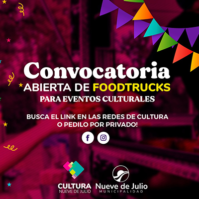 Tras abrir una convocatoria abierta a artistas para la programación de verano, la Municipalidad de Nueve de Julio, a través de la dirección de Cultura, inicia esta vez, una convocatoria a food trucks de la ciudad que quieran sumarse a acompañar los eventos.