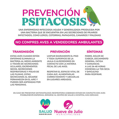 La secretaria de Salud, en conjunto con la dirección de Zoonosis de la Municipalidad de Nueve de Julio, recomiendan estar atentos ante la aparición de casos de psitacosis.