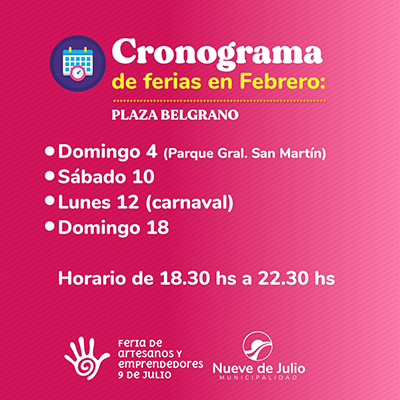 En el mes de febrero los feriantes estarán por primera vez en el Parque Gral. San Martín, en el evento “Verano Varieté” que se desarrollará el domingo 4 con juegos, talleres y foodtracks. En el mismo mes participarán además, del festejo de carnaval el lunes 12, ambos organizados por la Dirección de Cultura.