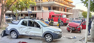 Minutos después de las 6 hs. del sábado, por cuestiones que se tratan de establecer, dos camionetas protagonizaron un fuerte choque en zona céntrica de la ciudad, que dieron por resultado tres personas heridas , una de gravedad.