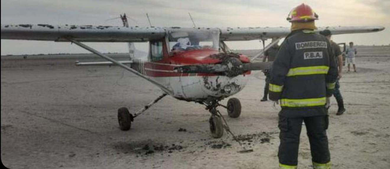 La aeronave mostraba en la hélice e inclusive en una de sus alas, restos de la tierra arenosa de la laguna