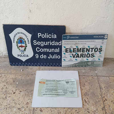 El miércoles, personal del Gabinete Técnico Operativo de la Policía Comunal de 9 de Julio tomó conocimiento de que una persona mayor de edad se encontraba realizando compras con cheques apócrifos, por lo que en virtud de ello y realizando tareas encubiertas, interceptó a un ciudadano mayor de edad, el cual momentos antes había realizado la compra de neumáticos en un local comercial de la zona. Mantenida comunicación con la UFI interviniente, la misma dispuso se labren actuaciones caratuladas “Tentativa de estafa y uso de documento privado falso”.